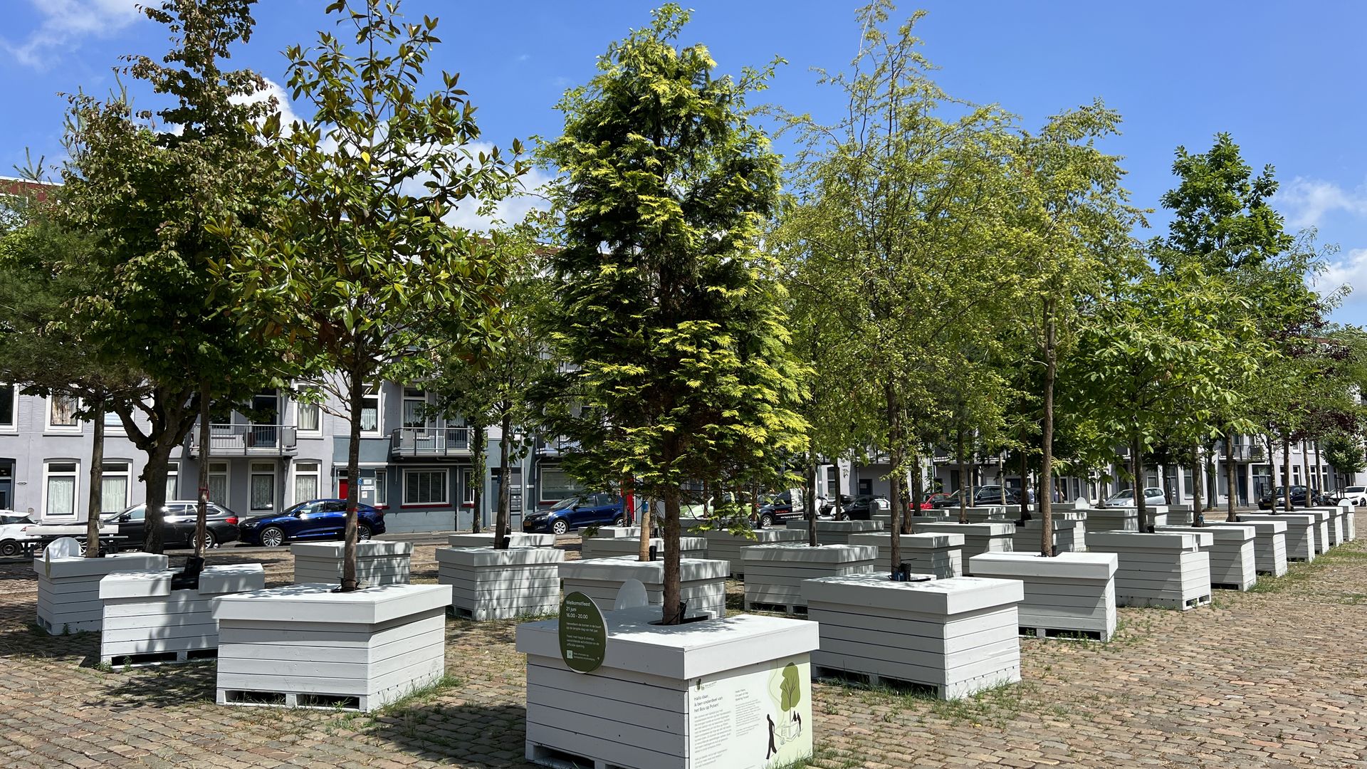 Met het Bos op Poten maken we het makkelijk om te vergroenen, ook op plekken waar dat eerst misschien niet kan. De bomen in bakken maken het mogelijk voor bewoners om hun eigen stad vorm te geven. Wil je het bos juist in lijnen, of misschien wel in cirkels opstellen?
