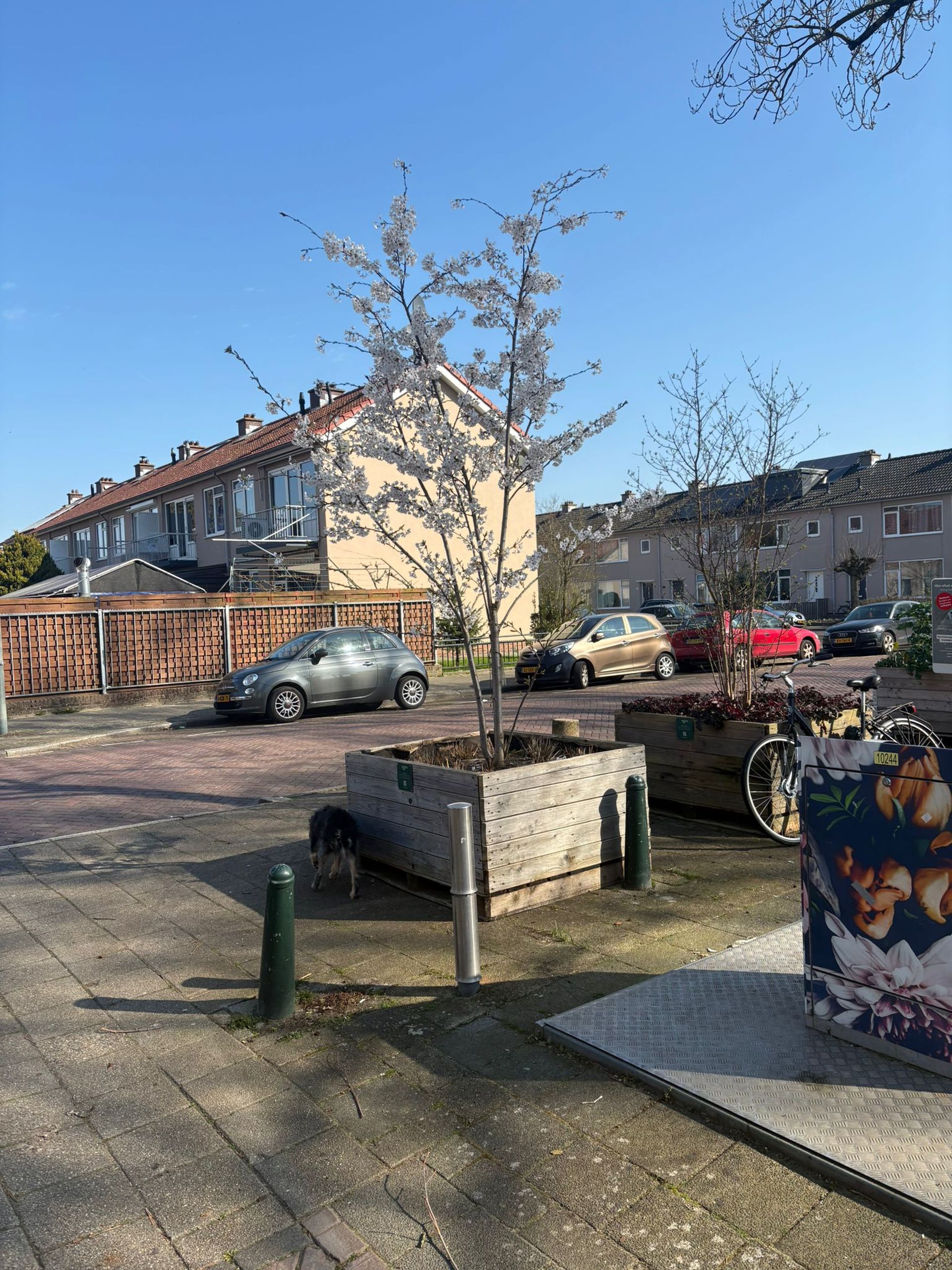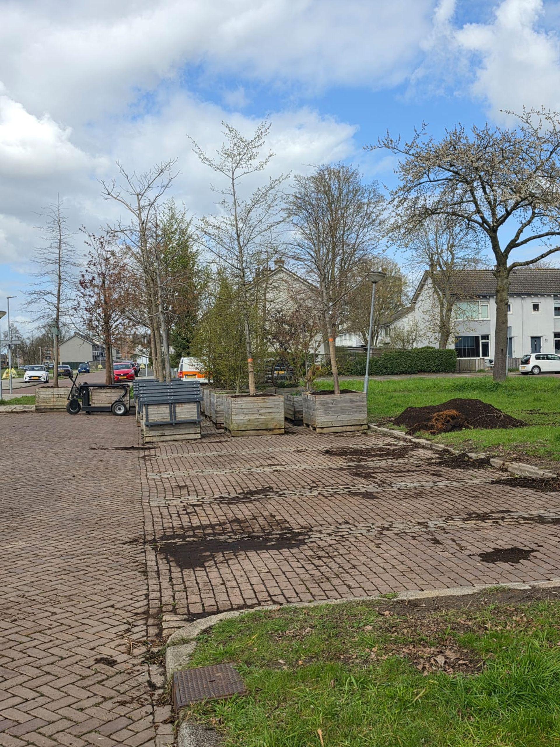 Nu staan de bomen op de parkeerplaats op de Cornelis Evertsenstraat én staan er twee bomen bij de Boekanier.